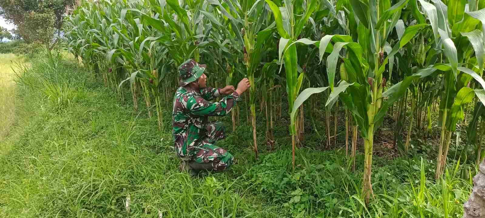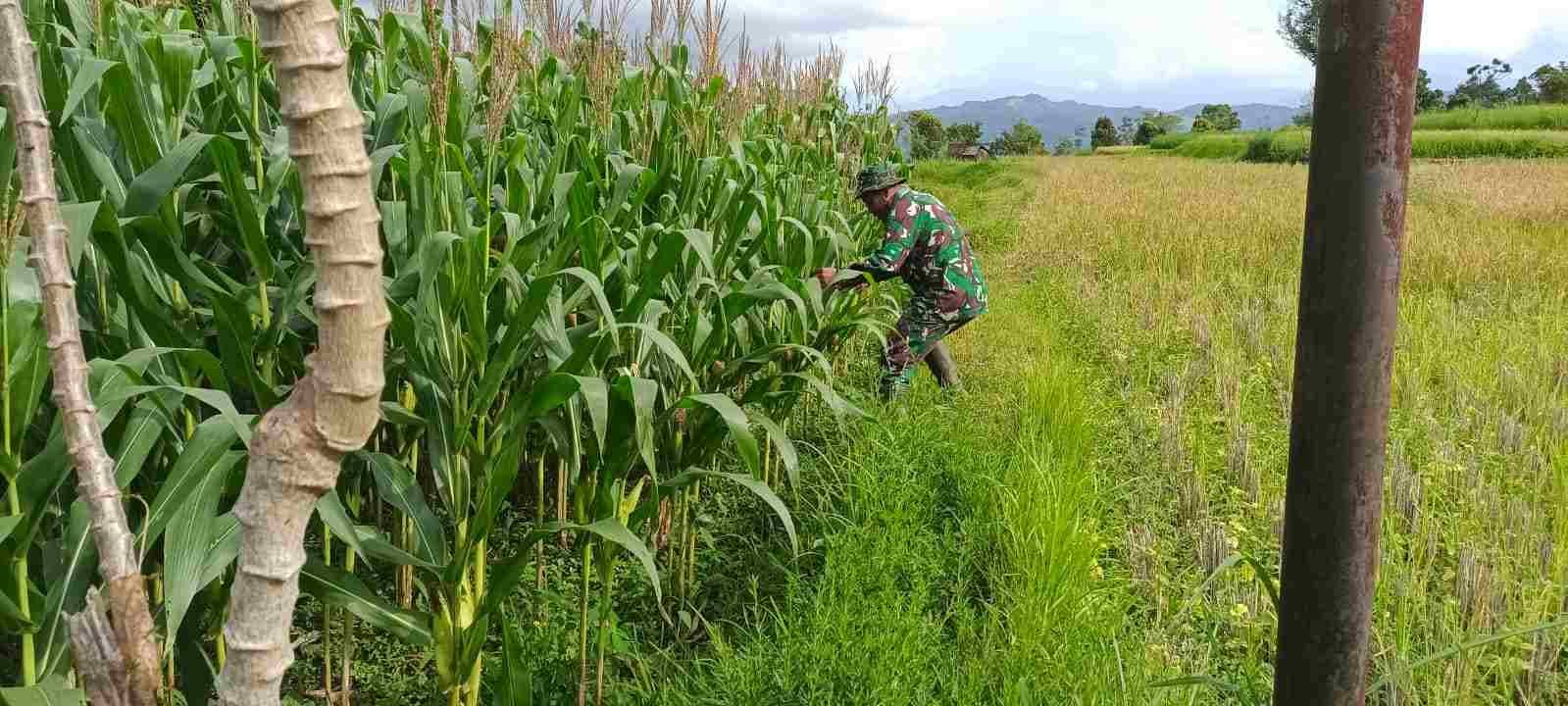 Babinsa Koramil 06/Sungayang Lakukan Pembersihan Tanaman Jagung