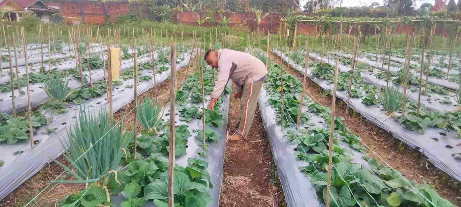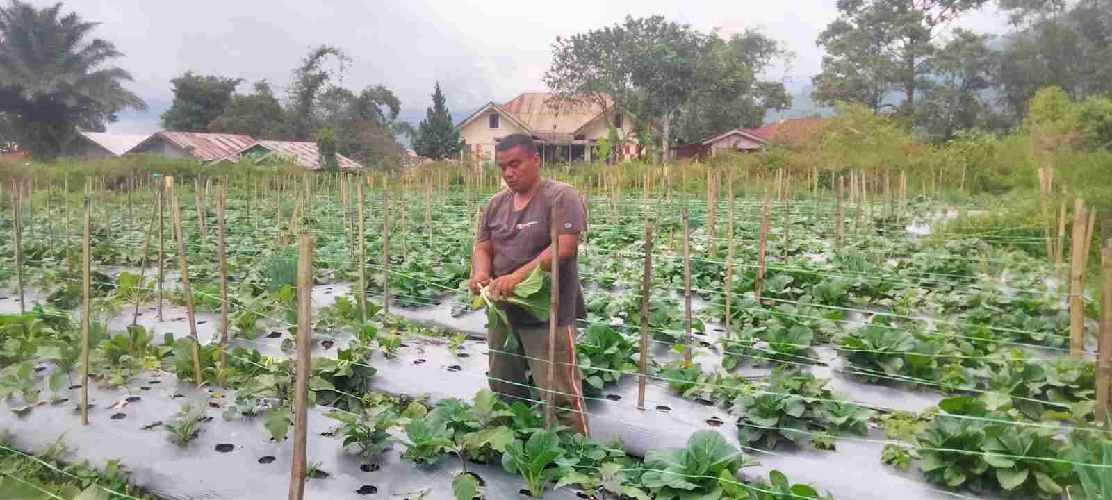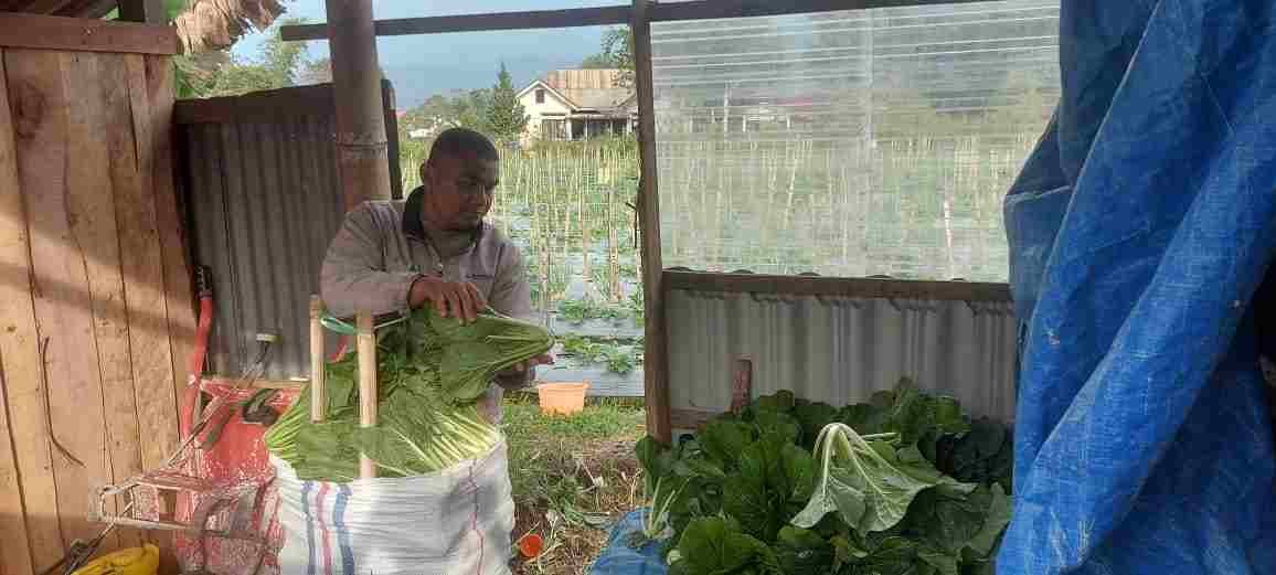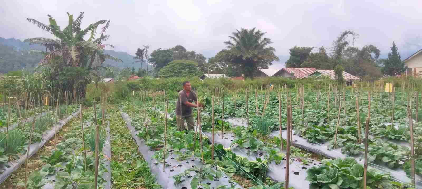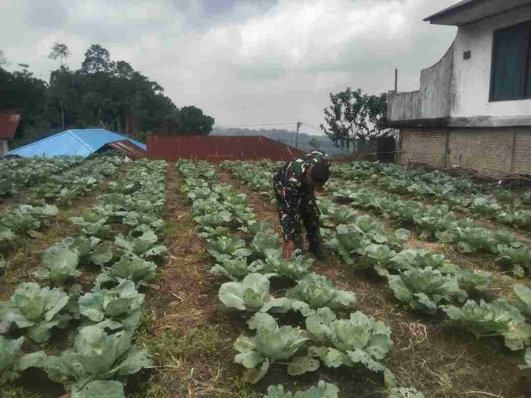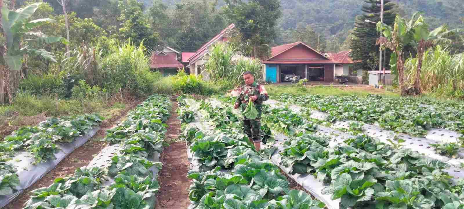 Dukung Ketahanan Pangan, Babinsa Koramil 01/PP Bersama Petani Binaan Panen Sayur