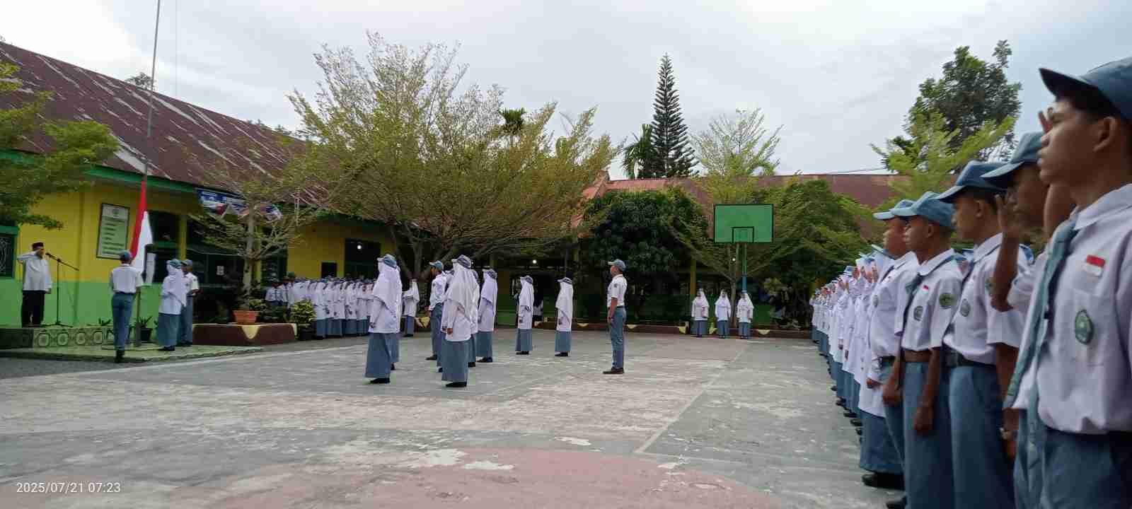 Mentreng.com | Kota Solok – Upacara bendera rutin hari Senin yang digelar di halaman kampus MAN Kota Solok berlangsung dengan khidmat dan tertib. Kegiatan ini menjadi momen penting karena merupakan upacara bendera perdana bagi peserta didik baru tahun ajaran 2025/2026, Senin (21/07/25)