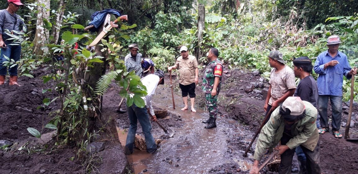 Mentreng.com | Sumatera Barat – Wahyu IP ikut goro bersama masyatakat Nagari Sungai Jambu di Jorong Batur pada Sabtu (21/12). Wahyu IP bersama masyarakat rela mengangkat satu dus air mineral bersama-sama masyarakat, melewati medan jalan yang sangat rumit, jalan menurun dan licin karna hari hujan.